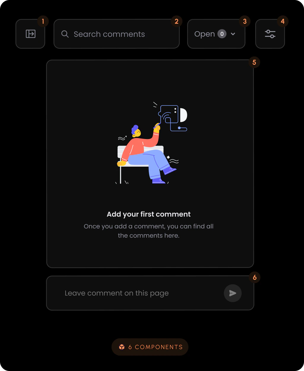 <VeltCommentsSidebar darkMode={true} />